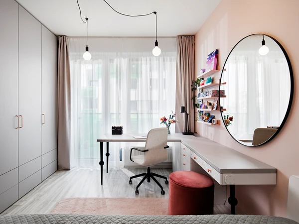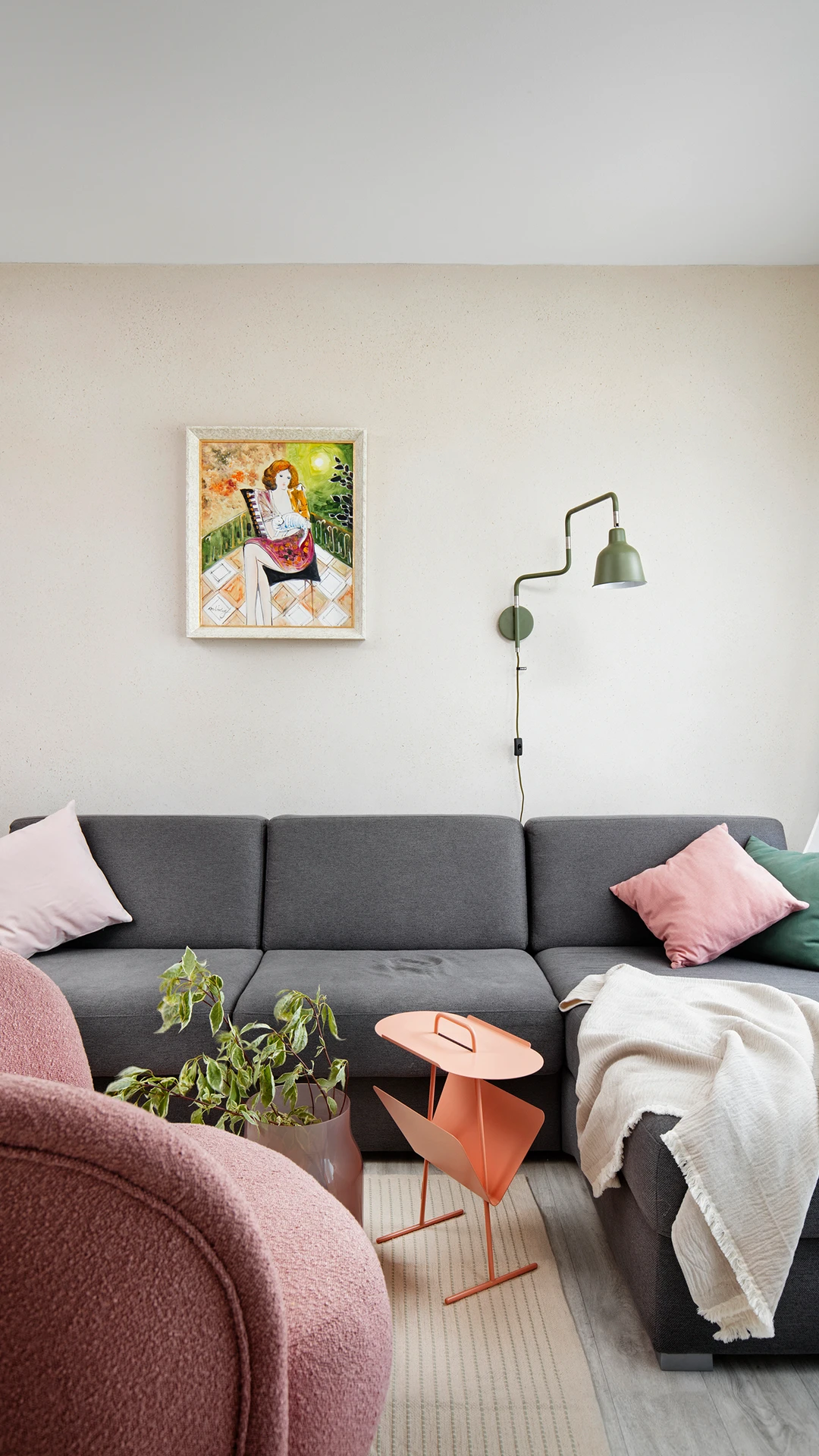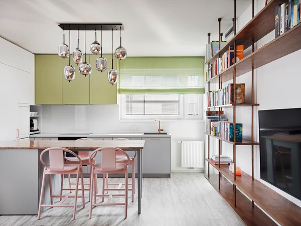 Interiér navržený Ivou Hájkovou vznikl jako citlivé dovybavení již hotového bytu pro klientku, její dceru a jejich králíčka. Koncept pracuje s tématem přírody a útulnosti, které se promítá jak do barevnosti, tak do použitých materiálů. Přítomnost zvířete byla v návrhu zohledněna nejen prakticky, ale i atmosférou prostoru inspirovanou travinami, měkkými texturami a klidnými tóny.