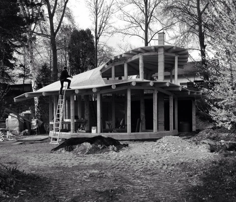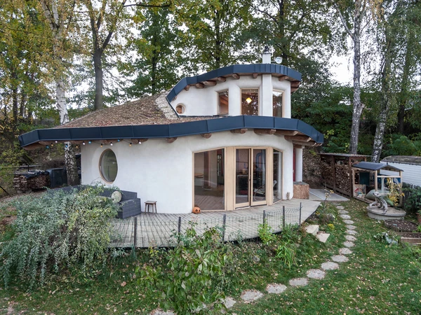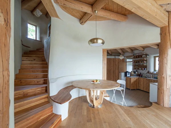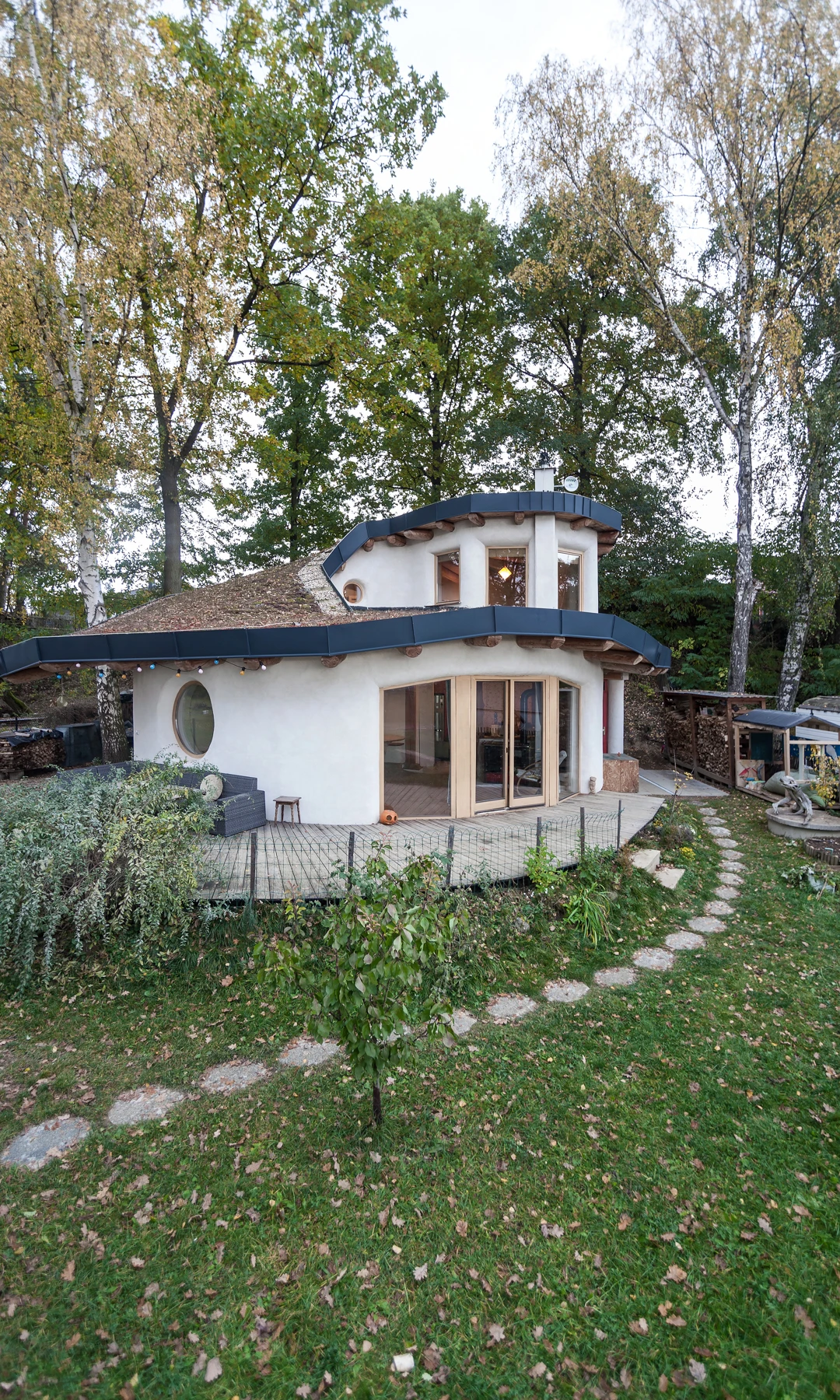 Dům byl navrhnut a postaven Martinem Žižkou ze Studia Circle Growth, dům se stavěl přes 3 léta. V průběhu prvního léta, v roce 2016, byl vykopán sklep ve kterém je studna, dále se vykopal hlavní přívod vody a položily základy. Majitel Miloš, báječně talentovaný truhlář a houslař, vyrobil základy s pomocí celé rodiny. Zhotovení dřevěné kostry trvalo až do pozdního března roku 2017. V průběhu léta roku 2017 se do dřevěné kostry vsadily slaměné balíky, okna, postavili schody a interiérové přepážky vyrobené z monolitické hliněné směsi zvané Cob. Hliněná omítka na slaměné balíky a stěny z Cob směsi jsou z hlíny která byla vykopána kvůli základům. V létě roku 2018 se dokončil interiér za pomocí na stavbě vyrobených omítek a hliněných omítek Picas (jemná béžová, antik bílá a olivově zelená). Majitelé se nastěhovali na začátku zimy 2018-19 a od té doby si chválí způsob jakým se přes den světlo pohybuje skrz dům.