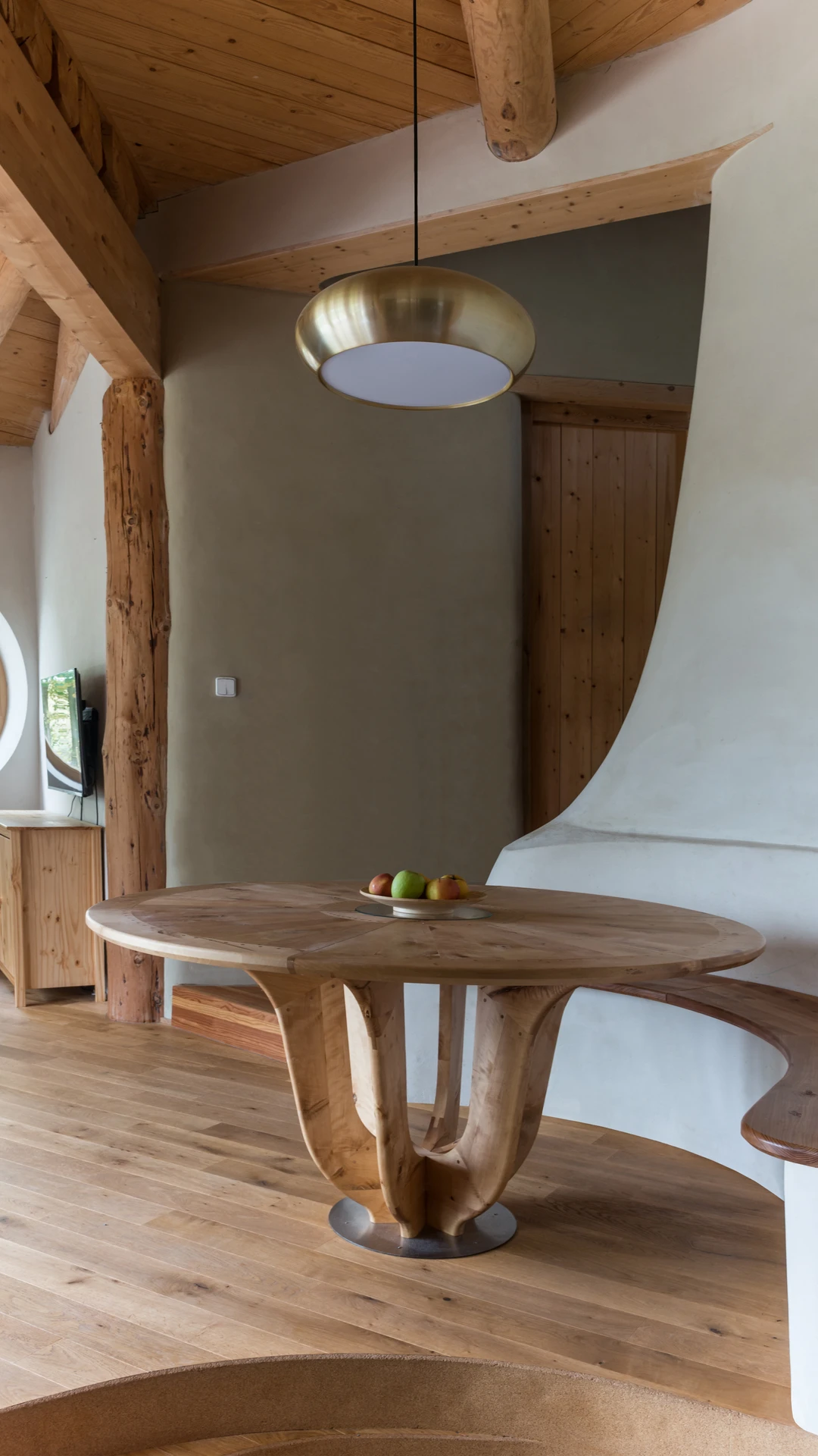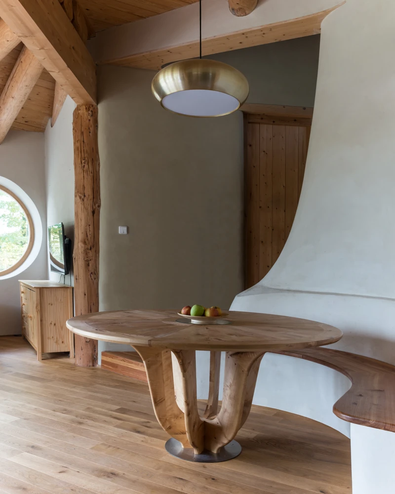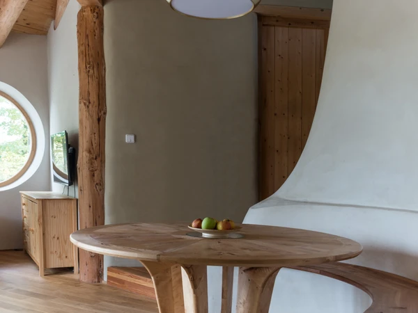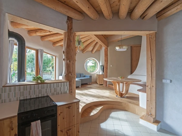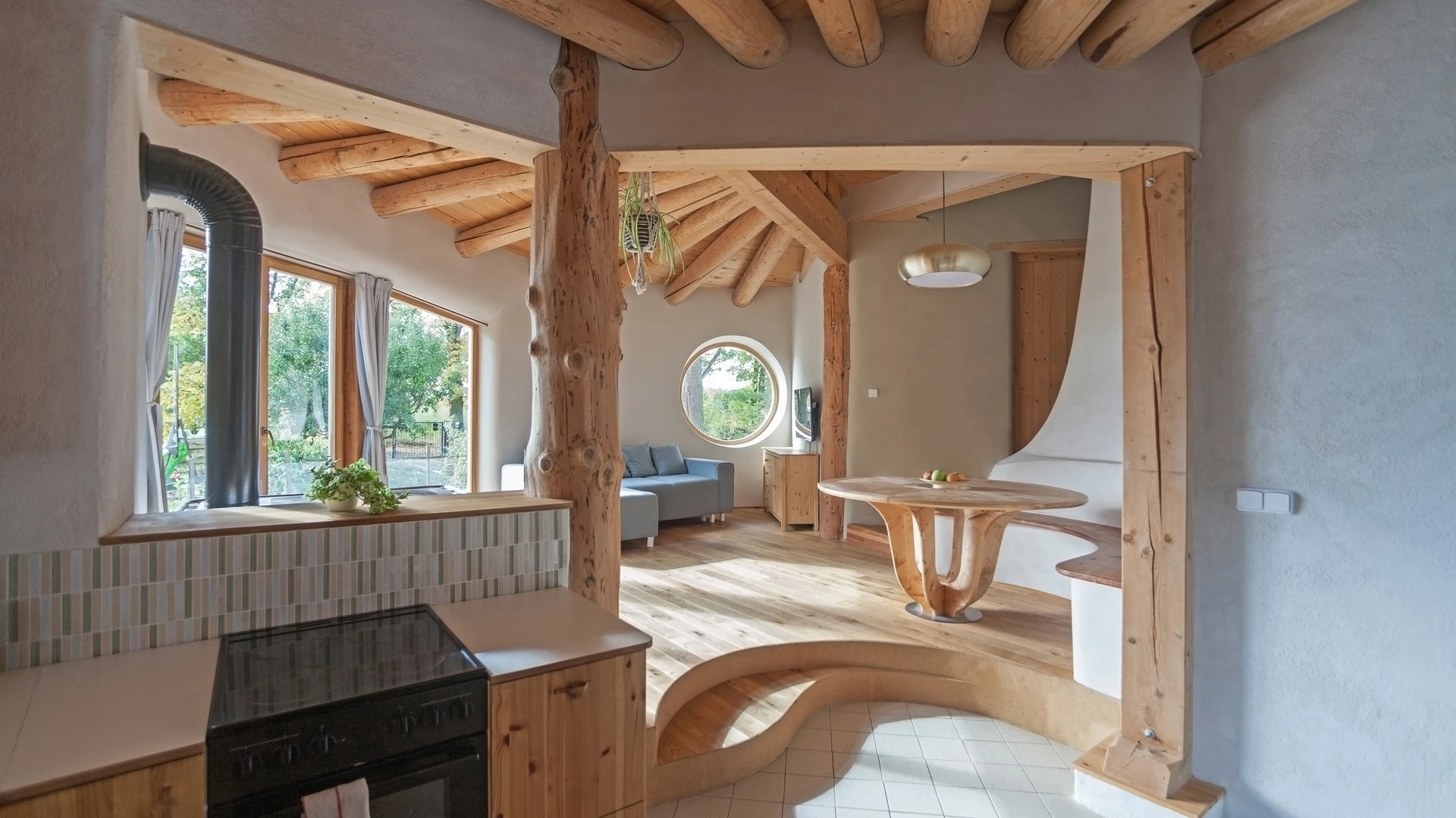 Dům byl navrhnut a postaven Martinem Žižkou ze Studia Circle Growth, dům se stavěl přes 3 léta. V průběhu prvního léta, v roce 2016, byl vykopán sklep ve kterém je studna, dále se vykopal hlavní přívod vody a položily základy. Majitel Miloš, báječně talentovaný truhlář a houslař, vyrobil základy s pomocí celé rodiny. Zhotovení dřevěné kostry trvalo až do pozdního března roku 2017. V průběhu léta roku 2017 se do dřevěné kostry vsadily slaměné balíky, okna, postavili schody a interiérové přepážky vyrobené z monolitické hliněné směsi zvané Cob. Hliněná omítka na slaměné balíky a stěny z Cob směsi jsou z hlíny která byla vykopána kvůli základům. V létě roku 2018 se dokončil interiér za pomocí na stavbě vyrobených omítek a hliněných omítek Picas (jemná béžová, antik bílá a olivově zelená). Majitelé se nastěhovali na začátku zimy 2018-19 a od té doby si chválí způsob jakým se přes den světlo pohybuje skrz dům.