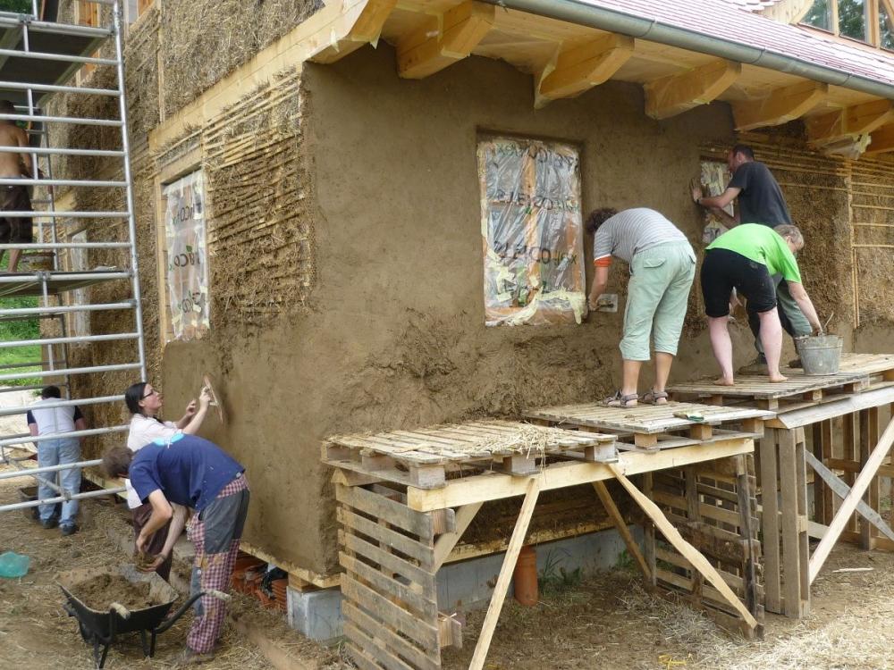 Vedení prací na workshopu "fasádní hliněná omítka".
