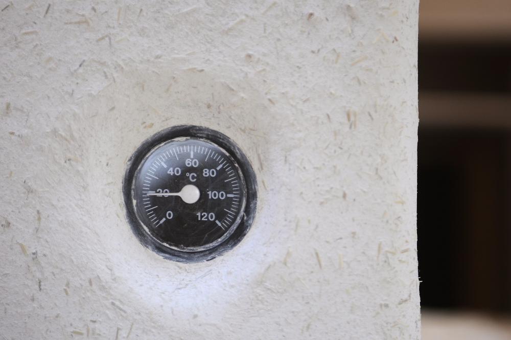 Detail finálního povrchu a pracovního hrubšího povrchu dokumentuje rozličné možnosti použití, ale také působení hliněných omítek. Více informací o obraze zde v BioGalerii.