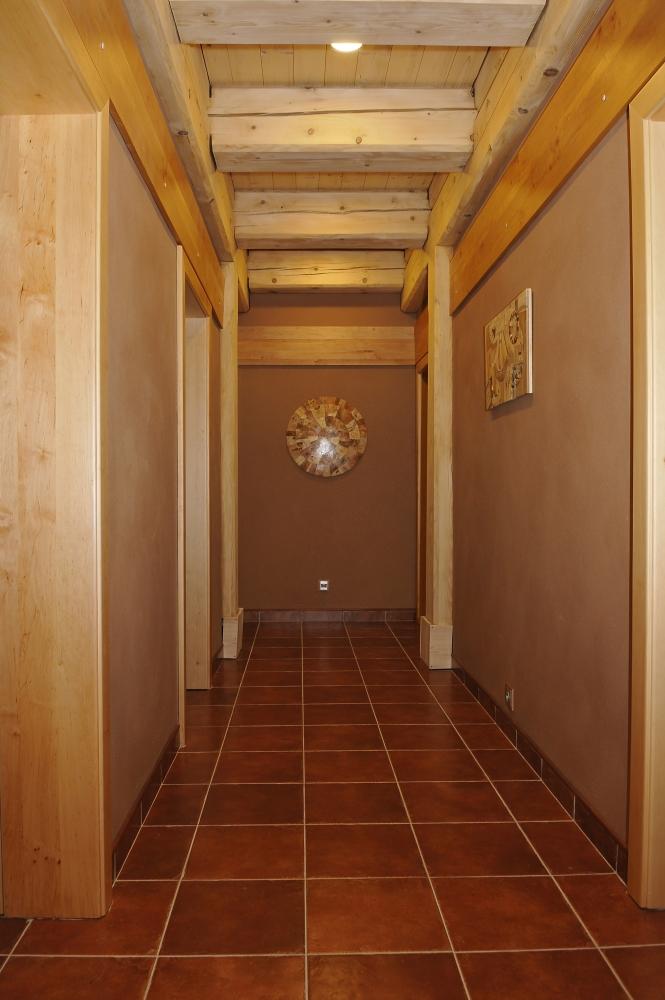 Chodba v přízemí – hliněná omítka Econom hnědá podzimní a opět obrazy pana Patřičného. Omítky v celém domě realizoval Aleš Dorazil s kolegy.