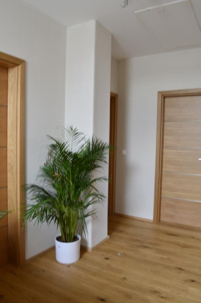 Na této realizaaci v Rakousku byla použita jako základ hrubá hliněná omítka v tloušťce 15mm. Finální hliněný štuk tvoří jemná hliněná omítka hnědá Ekonom a bílá Artová hliněná omítka.