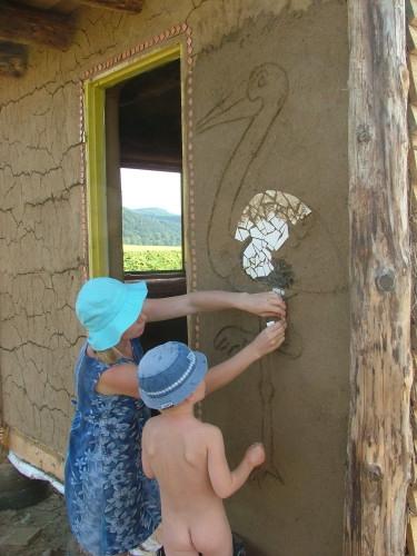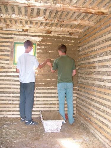 Do venkovní omítky se přidával písek, hlína, kravská mrva a kobylince. I po čtyřech letech je hliněná omítka v relativně dobrém stavu