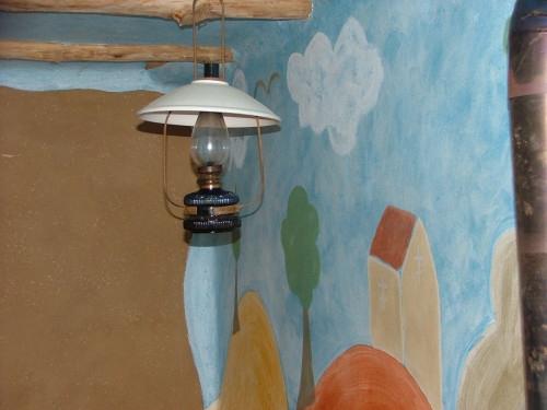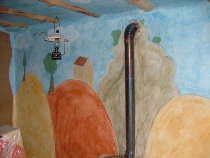Stěny se malovaly domácky vyrobeným kaseinem (nízkotučný tvaroh a vápno), ale nepovedlo se to a barva se po jednom roce začala odlupovat
