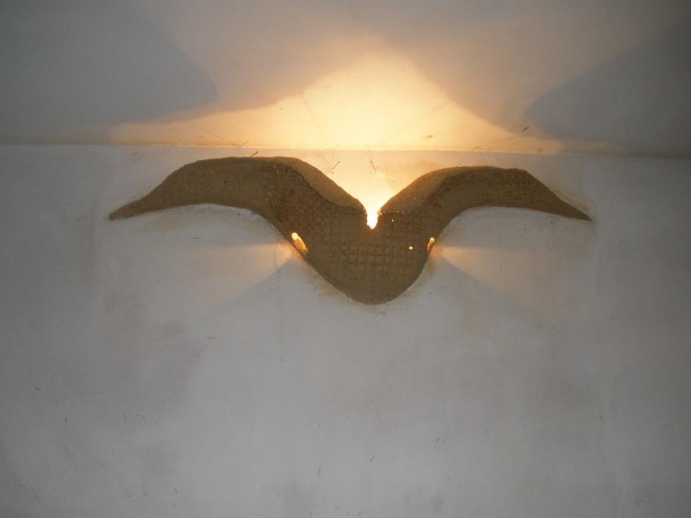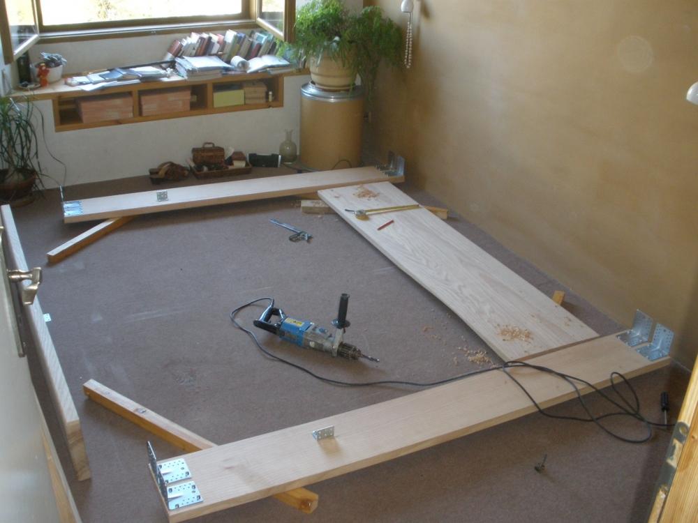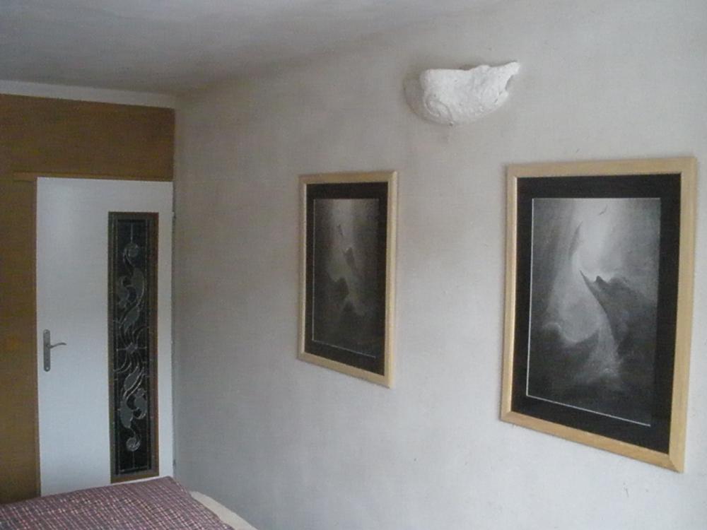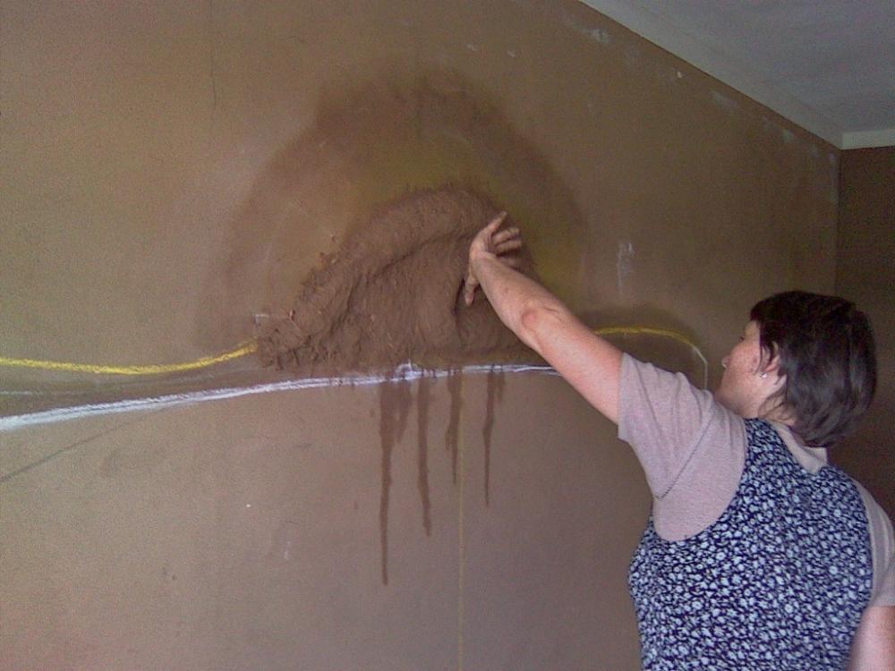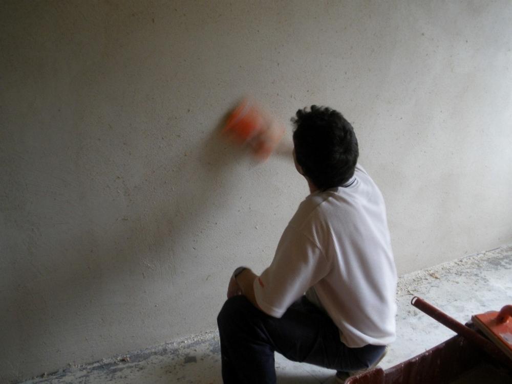 Bílá omítka : obsahuje cca 25% vápna, aby byla odolnější, kolem okna je leštěná, na stěně s topením filcovaná, aby vystoupil hrubší tmavý písek a kousky slámy (Rudice+hydrát). Hnědá omítka : jako finální vrstva je natažený čistý jíl a uhlazený štětkou (nakopaný Vysočina). Strop : bílý jíl s bílým pískem, filcováno, velmi náchylný na otěr, proto použito na strop (Rudice). Světlo se tvořilo na dvakráte, což při prohlídnutí fotografií, je všem jasné proč... Topení : stěnové, napojené na stávající radiátorový systém, přetažený perlinkou