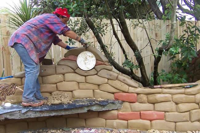 Bohužel neznám autora. Fotografie pochází z Nového Zélandu. Cementu se přidávalo do hlíny cca 15% objemově.