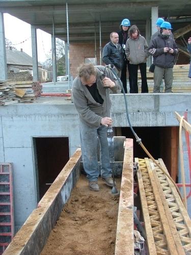 Do rohů dusaných stěn se přidával cement, aby se zvýšila odolnost vůči uražení rohu