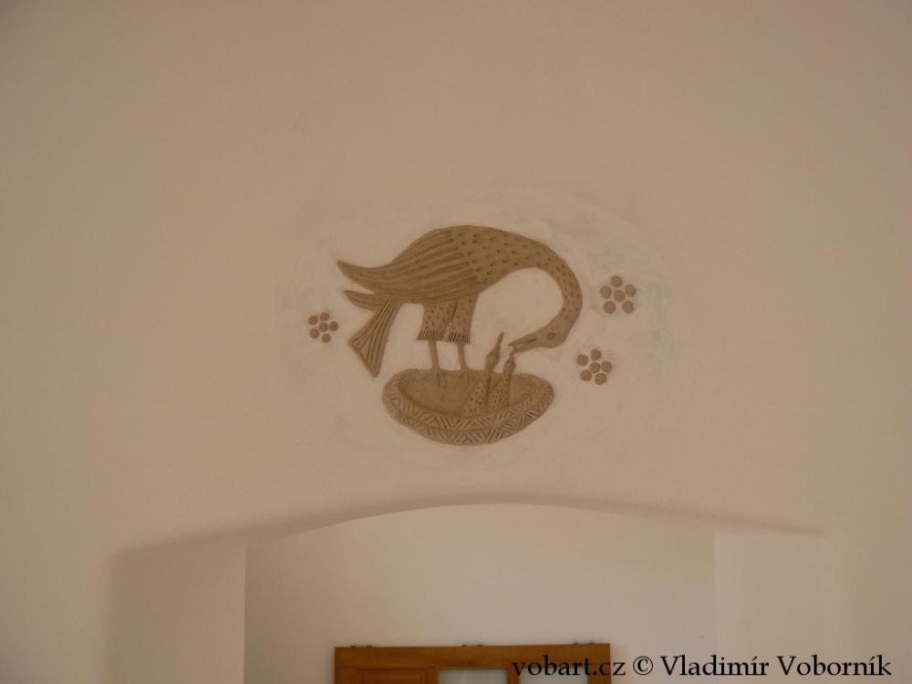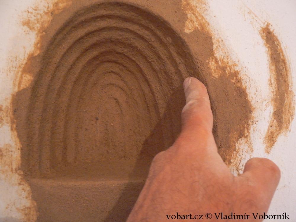 Celý interiér domu byl vytvořen v hliněných omítkách, které zmizely pod vápenným nátěrem a tak jsem hlínu několika málo prvky opět přivedl k životu.